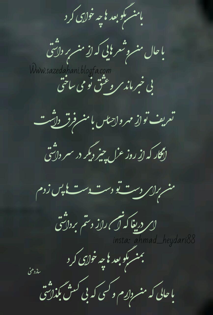 گفت دوسم نداره،گفت برای تو راحته گذشتن در صورتی که داشتم توچشماش نگاه می کردم و مثل یه زندانی محکوم به اعدام التماسشو می کردم کسی که می دونه دیگه براش فردایی وجود نداره